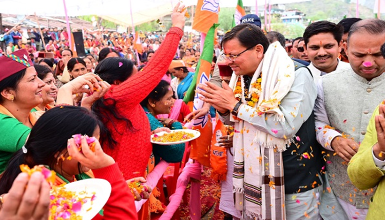 सीएम धामी ने भटवाड़ी में माला राजलक्ष्मी शाह के पक्ष में आयोजित जनसभा में हुए शामिल