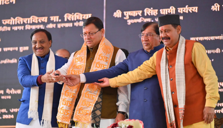 देहरादून – मुख्यमंत्री पुष्कर सिंह धामी ने आज जौलीग्रांट एयरपोर्ट पर नवनिर्मित टर्मिनल भवन फेज-2 का लोकार्पण किया। इस अवसर पर केन्द्रीय नागर विमानन मंत्री ज्योतिरादित्य सिंधिया ने भी कार्यक्रम में वर्चुअल प्रतिभाग किया। इस अवसर पर केन्द्रीय मंत्री ज्योतिरादित्य सिंधिया ने कहा कि उनके लिए यह क्षण कई पहलुओं से भावुक और महत्वपूर्ण क्षण है। उन्होंने कहा कि देवभूमि उत्तराखण्ड से उनका पहले से नाता है। उन्होंने 05 साल उत्तराखण्ड से शिक्षा ग्रहण की है। उन्होंने कहा कि मंत्रालय द्वारा पिथौरागढ़-हिंडन हवाई सेवा के लिए कार्यवाही शुरू की जा चुकी है। उन्होंने कहा कि इमरजेंसी मेडिकल सर्विस हेतु हेलीकॉप्टर सेवा की देश में उत्तराखण्ड से शुरूआत की जा रही है। एम्स ऋषिकेश में इसके लिए हेलीकॉप्टर की व्यवस्था की जाएगी।
