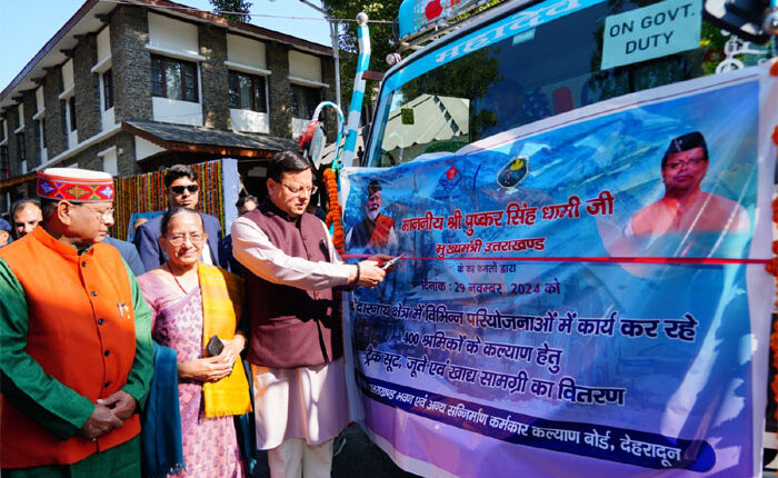 देहरादून। मुख्यमंत्री पुष्कर सिंह धामी ने पंजीकृत निर्माण श्रमिकों के आश्रित शिशुओं के लिए प्रदेश में 168 पालना केंद्रों का उद्घाटन किया। मुख्यमंत्री कैंप कार्यालय में आयोजित कार्यक्रम के दौरान उन्होंने श्रम विभाग एवं कर्मचारी राज्य योजना कार्यालयों को सीएसआर मद से 60 कंप्यूटर का वितरण भी किया। केदारनाथ क्षेत्र में विभिन्न परियोजनाओं में कार्य कर रहे 432 श्रमिकों के लिए ट्रैक सूट, जूते एवं खाद्य सामग्री के ट्रक को हरी झंडी दिखाकर मुख्यमंत्री ने रवाना किया।