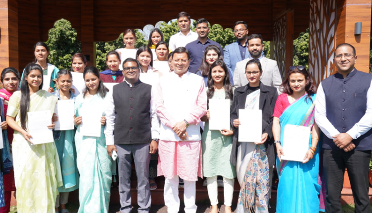देहरादून – मुख्यमंत्री पुष्कर सिंह धामी ने आज मुख्यमंत्री आवास परिसर में 27 अभ्यर्थियों को नियुक्ति पत्र दिए। इसमें महिला सशक्तिकरण एवं बाल विकास विभाग के अंतर्गत चयनित 16 सुपरवाइजर तथा आबकारी विभाग के अंतर्गत चयनित 10 निरीक्षक व 01 कनिष्ठ सहायक शामिल हैं। मुख्यमंत्री ने सभी चयनित अभ्यर्थियों को बधाई व शुभकामनाएं देते हुए कहा कि आपके अथक परिश्रम के परिणामस्वरूप, आपका चयन इन पदों पर हुआ है, इसलिए अपने जीवन में हमेशा अनुशासित होकर कार्य करें।इस अवसर पर सचिव तथा निदेशक महिला सशक्तिकरण एवं बाल विकास विभाग, आबकारी विभाग के अधिकारी सहित संबंधित अधिकारीगण उपस्थित थे।