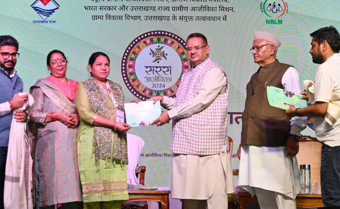 देहरादून। ग्राम्य विकास मंत्री गणेश जोशी ने आज रविवार को देहरादून के रेंजर्स ग्राउंड में आयोजित दस दिवसीय सरस मेला – 2024 के समापन कार्यक्रम में बतौर मुख्य अतिथि प्रतिभाग किया। इस दौरान ग्राम्य विकास मंत्री गणेश जोशी ने स्वयं सहायता समूहों द्वारा लगाए गए विभिन्न स्टालों का अवलोकन किया। इस दौरान ग्राम्य विकास मंत्री गणेश जोशी ने मेले में ओडिशा राज्य द्वारा लगाए गए स्टॉल से निर्मित पेंटिंग की खरीदकारी कर ऑनलाइन माध्यम से पेमेंट भी की किया। कार्यक्रम में कैबिनेट मंत्री गणेश जोशी की पत्नी निर्मला जोशी भी उपस्थिति रही। इस अवसर पर ग्राम्य विकास मंत्री गणेश जोशी ने सरस मेला 2024 के सफलता के लिए ग्राम्य विकास विभाग ओर जिला प्रशासन के अधिकारियों कर्मचारियों को बधाई दी। उन्होंने कहा कि प्रधानमन्त्री का स्वप्न “लखपति दीदी” की संकल्पना को इस मेले के माध्यम से साकार किया गया है।
