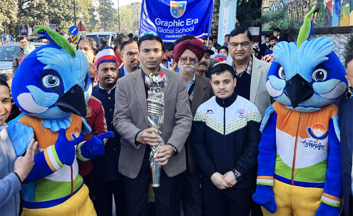 देहरादून। जिलाधिकारी सविन बंसल ने 38वें राष्ट्रीय खेलों के आयोजन के शुभंकर, लोगो, जर्सी, टेगलाईन एवं मशाल रैली (तेजस्विनी), का स्वागत सचिवालय से किया। मशाल रैली (तेजस्विनी) सचिवालय से घंटाघर तक निकाली गई। इस अवसर पर स्कूली बच्चों, एनसीसी कैडट सहित जनमानस ने प्रतिभाग किया।
