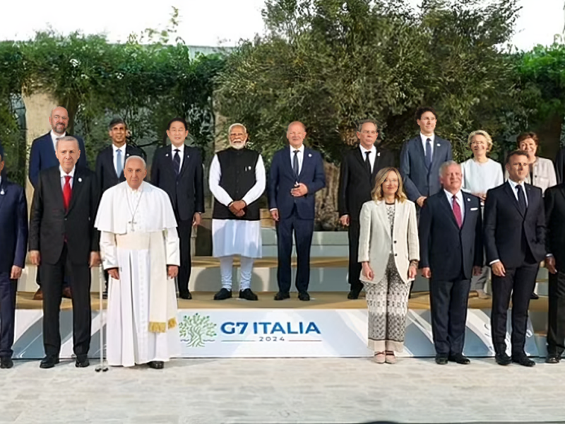 नई दिल्ली – जी7 शिखर सम्मेलन के ‘आउटरीच नेशन’ सत्र में दुनिया भर के नेताओं ने एक साथ फोटो खिंचवाई। जी7 शिखर सम्मेलन के दूसरे दिन प्रधानमंत्री नरेंद्र मोदी ने वैश्विक नेताओं से मुलाकात की।प्रधानमंत्री ने सभी देशों के साथ कई अहम मुद्दों पर चर्चा की।प्रधानमंत्री मोदी ने जी-7 शिखर सम्मेलन के दूसरे दिन ब्राजील के राष्ट्रपति लुइज इंसियो लूला दा सिल्वा, तुर्की के राष्ट्रपति रजब तैयब इरदुगान और यूएई के राष्ट्रपति मोहम्मद बिन जायद अल नाहयान से मुलाकात की।