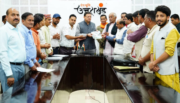 मुख्यमंत्री धामी से भाजपा के प्रदेश मीडिया प्रभारी मनवीर सिंह चौहान के नेतृत्व में आए लोगों ने भेंट की