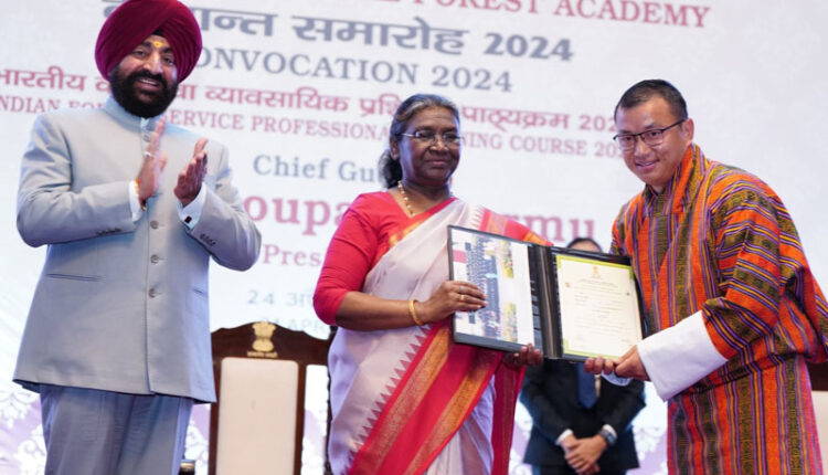 राष्ट्रपति ने कहा कि भारतीय वन सेवा के पी. श्रीनिवास, संजय कुमार सिंह, एस. मणिकन्दन जैसे अधिकारियों ने ड्यूटी के दौरान अपने कर्तव्यों का निर्वहन करते हुए प्राण न्योछावर किए हैं। देश एवं पर्यावरण के लिए भारतीय वन सेवा ने अतुलनीय अधिकारी दिये हैं। राष्ट्रपति ने कहा कि जनजातीय जीवन शैली मुख्यतः प्रकृति पर आधारित होती है। इस समाज के लोग प्रकृति का संरक्षण भी करते हैं। यह अत्यंत महत्वपूर्ण है कि सदियों से जनजातीय समाज द्वारा संचित ज्ञान के महत्व को समझा जाए और पर्यावरण को बेहतर बनाने के लिए उसका उपयोग किया जाए।इस दौरान उत्तराखण्ड के राज्यपाल लेफ्टिनेंट जनरल गुरमीत सिंह (से.नि) ने कहा कि यह समारोह हमारे राष्ट्रीय वन धरोहर के संरक्षण और प्रबंधन के क्षेत्र में नए योग्य नेतृत्व का उत्थान करने के लिए एक महत्वपूर्ण कदम है। उन्होंने कहा कि इंदिरा गांधी राष्ट्रीय वन अकादमी ने अपने क्षेत्र में अत्यधिक महत्वपूर्ण भूमिका निभाई है। इस संस्था ने वन्य जीवन के प्रबंधन, और संरक्षण के क्षेत्र में उत्कृष्टता के मानकों को स्थापित किया है और नए अधिकारियों को प्रशिक्षित किया है।इस अवसर पर मुख्य सचिव राधा रतूड़ी, वन महानिदेशक और विशेष सचिव जितेन्द्र कुमार, इंदिरा गॉधी राष्ट्रीय वन अकादमी के निदेशक जगमोहन शर्मा एवं अन्य गणमान्य उपस्थित थे।