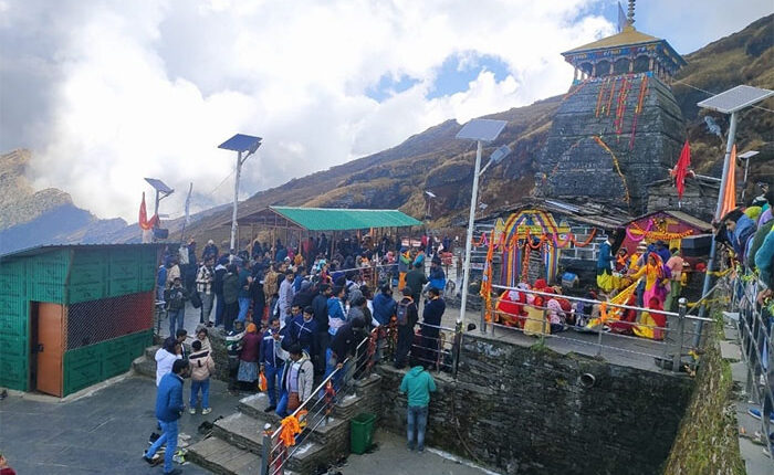 देहरादून। पंचकेदारों में प्रतिष्ठित तृतीय केदार श्री तुंगनाथ मंदिर के कपाट आज पूर्वाह्न 11 बजे शुभ मुहूर्त पर विधि- विधान से शीतकाल के लिए बंद हो गये हैं। कपाट बंद होने के बाद भगवान तुंगनाथ जी की उत्सव डोली ने स्थानीय वाद्य यंत्रों ढोल-दमाऊं सहित बाबा तुंगनाथ के जय उद्घोष के साथ प्रथम पड़ाव चोपता के लिए प्रस्थान किया। कपाट बंद होने के बाद मंदिर समिति कर्मचारियों तथा श्रद्धालुओं के साथ मंदिर की परिकरमा पश्चात अखोड़ी और हुडु गांव के हक-हकूकधारी भगवान तुंगनाथ जी की चल विग्रह डोली के साथ चोपता को प्रस्थान हुए। आज भगवान तुंगनाथ जी की चल विग्रह डोली चोपता प्रवास करेगी। 5 नवंबर तथा 6 नवंबर को चलविग्रह डोली दूसरे पड़ाव भनकुन प्रवास करेगी। 7 नवंबर को भगवान तुंगनाथ जी की चल विग्रह डोली शीतकालीन गद्दीस्थल श्री मर्केटेश्वर मंदिर मक्कूमठ में विराजमान हो जायेंगी।