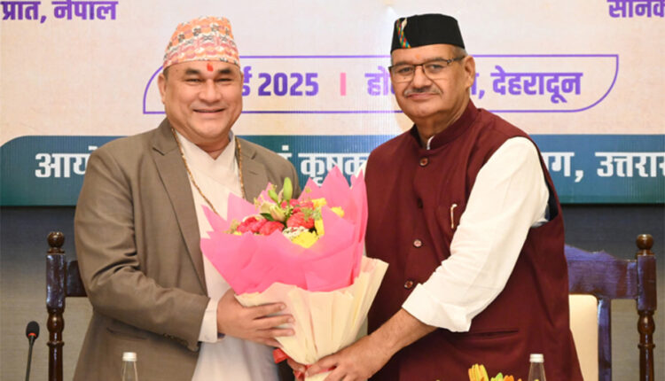 देहरादून। देहरादून में आयोजित उत्तराखण्ड एवं नेपाल के मध्य कृषि एवं सम्बद्ध क्षेत्रों में पारस्परिक सहयोग पर आधारित बैठक एवं परिचर्चा कार्यक्रम को दोनों राज्यों के लिए सार्थक बताते हुए उत्तराखण्ड के कृषि मंत्री गणेश जोशी ने कहा कि भारत और नेपाल का रिश्ता रोटी-बेटी का है। उन्होंने बाबा केदार और बाबा पशुपतिनाथ की बात करते हुए दोनों राष्ट्रों के बीच धार्मिक महत्तता को भी प्रकट किया। उन्होंने बताया कि राज्य के तराई व भावर क्षेत्र खाद्यान्न उत्पादन के लिए उपयुक्त हैं, वहीं पर्वतीय क्षेत्रों में औद्यानिकी और सगंध पौधों की भारी संभावनाएं हैं। उन्होंने प्रधानमंत्री नरेन्द्र मोदी और मुख्यमंत्री पुष्कर सिंह धामी का आभार जताते हुए कहा कि उनके नेतृत्व में राज्य में कृषि क्षेत्र का सतत विकास हो रहा है। उन्होंने यह भी बताया कि उत्तराखण्ड में क्लस्टर खेती को बढ़ावा दिया जा रहा है और सेब की अति सघन बागवानी योजना सहित जैविक व एरोमैटिक कृषि पर विशेष ध्यान दिया जा रहा है। मंत्री ने नेपाल से आए प्रतिनिधिमंडल से अपील की कि उत्तराखण्ड और नेपाल मिलकर कृषि और औद्यानिकी के क्षेत्र में सहयोग करें, जिससे दोनों पक्षों को रोजगार और आर्थिक समृद्धि के नए अवसर मिल सकें। उन्होंने विश्वास जताया कि यह बैठक दोनों क्षेत्रों के बीच दीर्घकालिक सहयोग की आधारशिला सिद्ध होगी और कृषि क्षेत्र में नई संभावनाओं के द्वार खोलेगी। उत्तराखण्ड के कृषि एवं कृषक कल्याण मंत्री गणेश जोशी ने इस बैठक एवं परिचर्चा कार्यक्रम में भाग लिया। यह कार्यक्रम कृषि विभाग द्वारा आयोजित किया गया था। देहरादून में आयोजित हुई उच्चस्तरीय अंतरराष्ट्रीय कृषि परिचर्चा में कृषि एवं सम्बद्ध क्षेत्रों में पारस्परिक सहयोग की संभावनाएं तलाशना और कार्य योजनाएं बनाने पर चर्चा की गई। बैठक में कृषि विभाग द्वारा उत्तराखंड की कृषि, उद्यानिकी और सगंध पर प्रस्तुतीकरण के माध्यम से और लघु फिल्म के माध्यम से जानकारी दी गई। कृषि मंत्री ने नेपाल के सुदूरपश्चिम प्रांत के मुख्यमंत्री कमल बहादुर शाह का उत्तराखण्ड आगमन पर पुष्पगुच्छ और बाबा केदारनाथ मंदिर की प्रतिकृति भेंट कर स्वागत किया। साथ ही नेपाल से आए प्रतिनिधिमंडल का भी स्वागत एवं अभिनंदन किया गया। प्रगतिशील किसानों में पद्मश्री डा0 प्रेमचंद शर्मा, मनमोहन भारद्वाज एवं अजयपाल सिंह पंवार सहित अन्य किसानों ने भी नेपाली मुख्यमंत्री का स्वागत किया। गोर्खाली समाज की ओर से गोर्खाली सुधार सभा के अध्यक्ष कैप्टन (सेनि) पदम सिंह थापा के नेतृत्व में 11 सदस्यीय प्रतिनिधिमण्डल ने नेपाल के मुख्यमंत्री का स्वागत किया। भारत सरकार के आमंत्रण पर उत्तराखण्ड पहुंचे नेपाल राष्ट्र के सुदूरपश्च